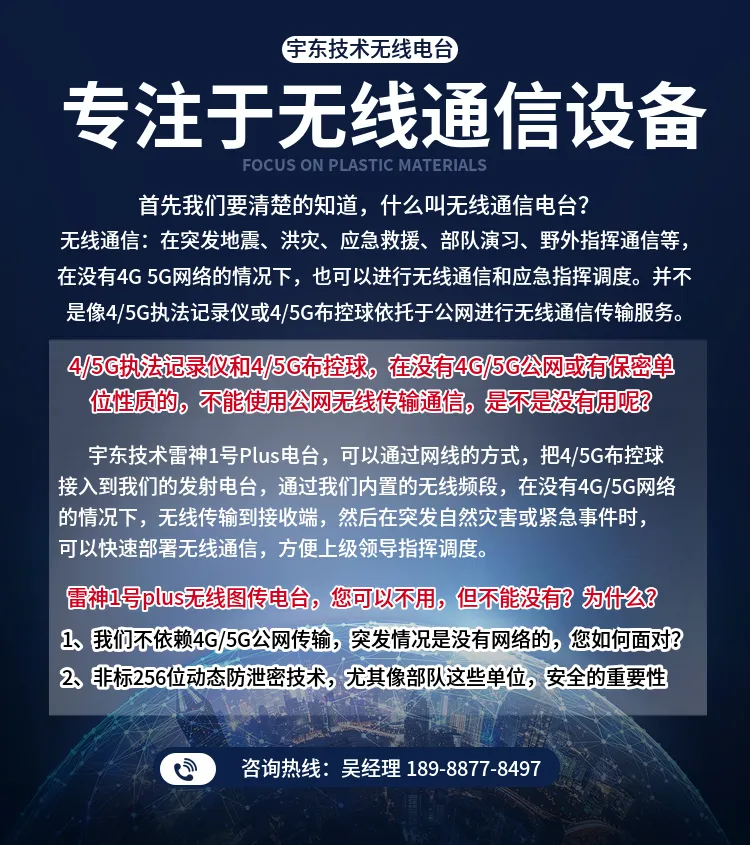 宇東技術(shù)雷神1號(hào)PLUS背負(fù)式高清無線圖傳電臺(tái),是公司針對(duì)應(yīng)急救援指揮、公安、反恐作戰(zhàn)、消防救援、邊防執(zhí)勤、海警海關(guān)巡檢、部隊(duì)拉練演習(xí)、森林消防等,在突發(fā)重大事件,斷網(wǎng)斷電,通信中斷的情況下,現(xiàn)場工作人員通過宇東雷神1號(hào)PLUS單兵圖傳電臺(tái),把現(xiàn)場采集的數(shù)據(jù)實(shí)時(shí)無線傳輸?shù)街笓]車/臨時(shí)指揮部大屏幕,讓指揮部領(lǐng)導(dǎo)對(duì)現(xiàn)場情況一目了然,節(jié)省了到達(dá)現(xiàn)場的時(shí)間,可快速做緊急指揮調(diào)度,最大限度的減少突發(fā)事件帶來的各種損失。